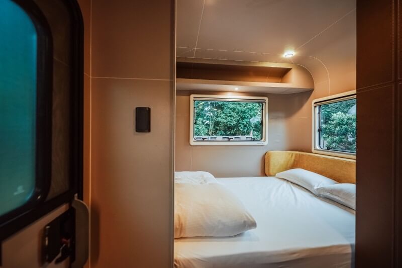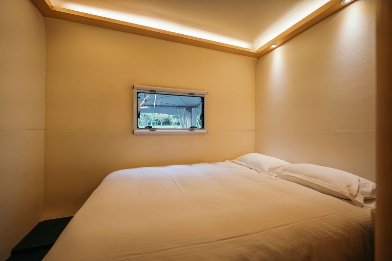 露營車有和洋二式,最多可入住4人,車內生活所需設備一應俱全,車外設有桌椅及營帳,可在這裡與親友一同享用豐盛的冬日暖心火鍋。