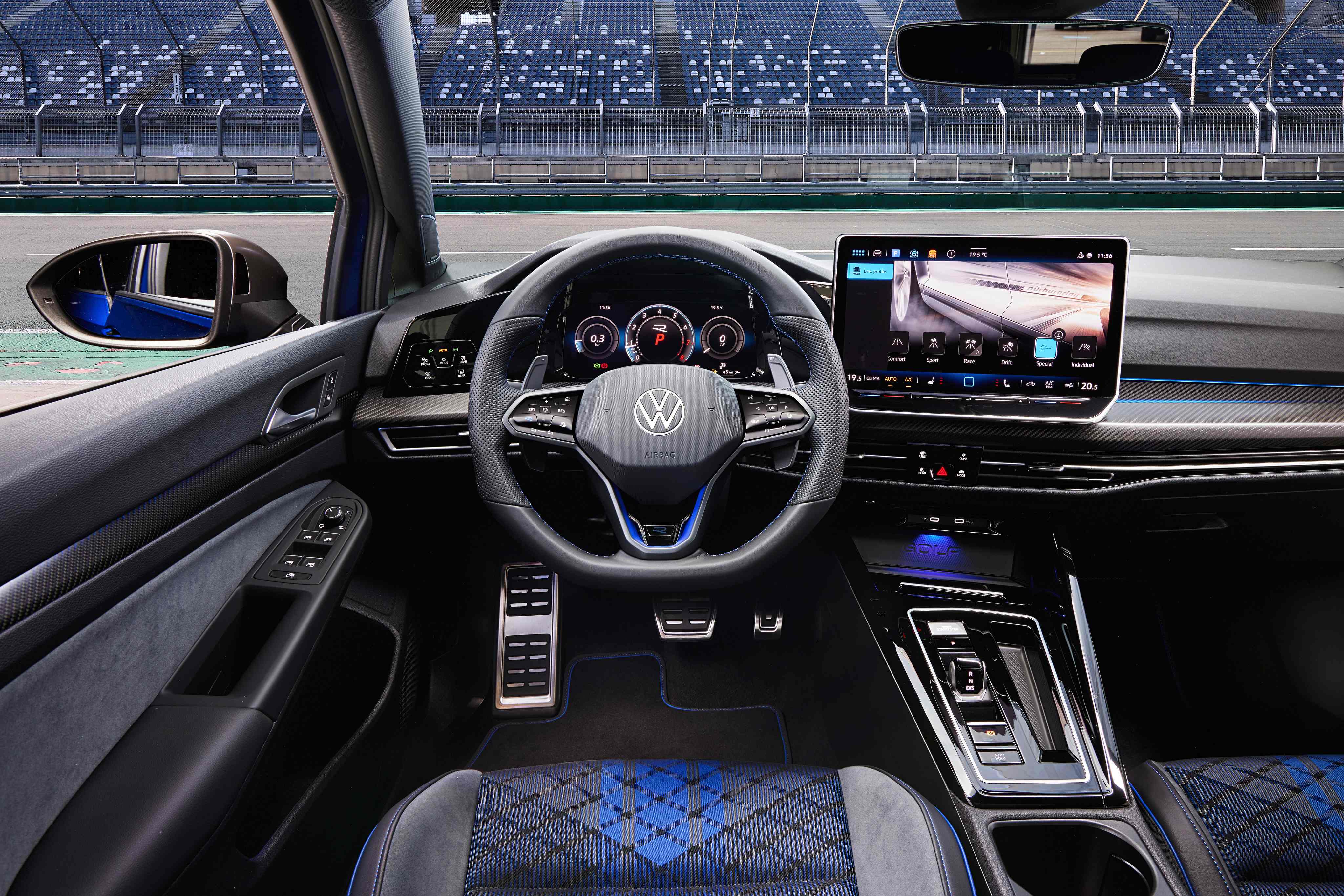 GTI車型使用的Queenstown鋁合金輪圈由五個半橢圓形組成,是品牌首席設計師Andreas Mindt向第五代GTI經典Detroit輪圈致敬之作,R車型配置新開發Warmenau輕量化鍛造鋁合金輪圈,以R總部所在地命名,較原輪圈重量減輕20%並有效提升操控和煞車散熱表現。台灣The new Golf推出雙主打新車色,230 eTSI及280 eTSI車型為洋溢高貴氣質的湖畔藍,280 eTSI R-Line和GTI車型享專屬未來感又純淨的冷冽冰澈藍。