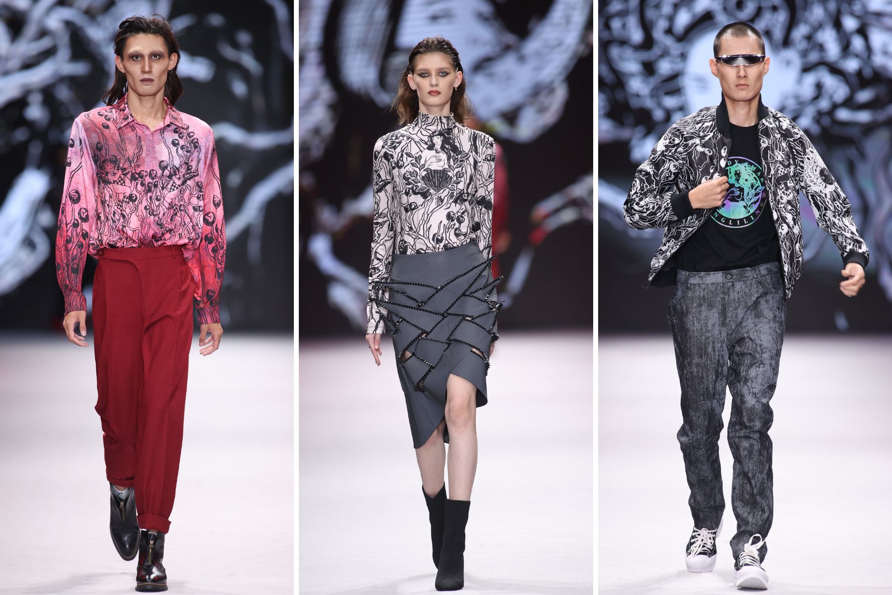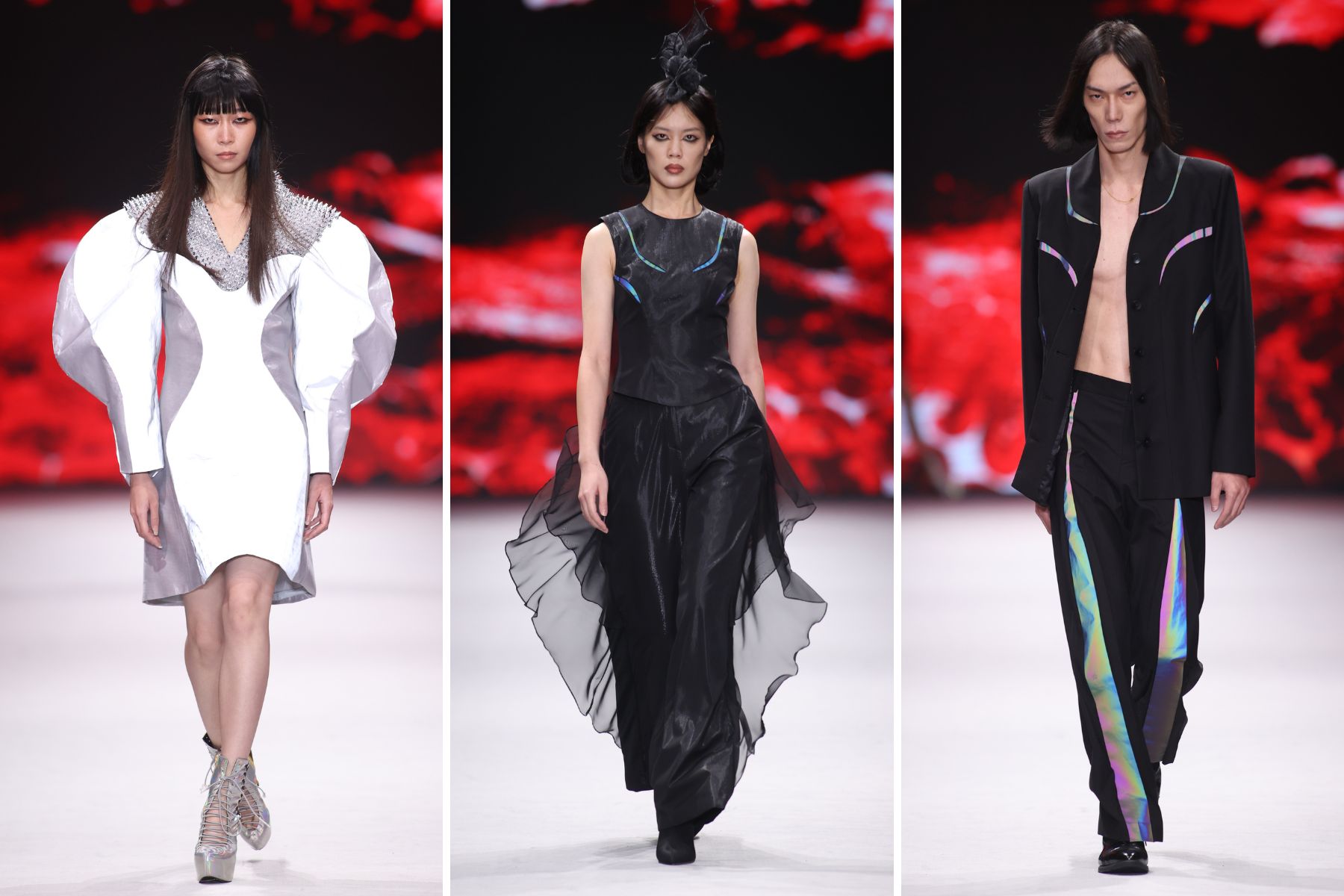台灣設計師汪俐伶同名品牌WANGLILING最新2024春夏系列甫於台北時裝周發布,現場展現品牌與日本恐怖漫畫大師伊藤潤二的聯名合作,以漫畫家官方授權、參與製作設計的台劇《聰明鎮》為核心,完成一場時尚品牌、漫畫與影視的跨國合作壯舉,透過設計師招牌的光影科技面料,結合漫畫家詭異深省的世界觀,帶來一場詭譎華麗的視覺饗宴。