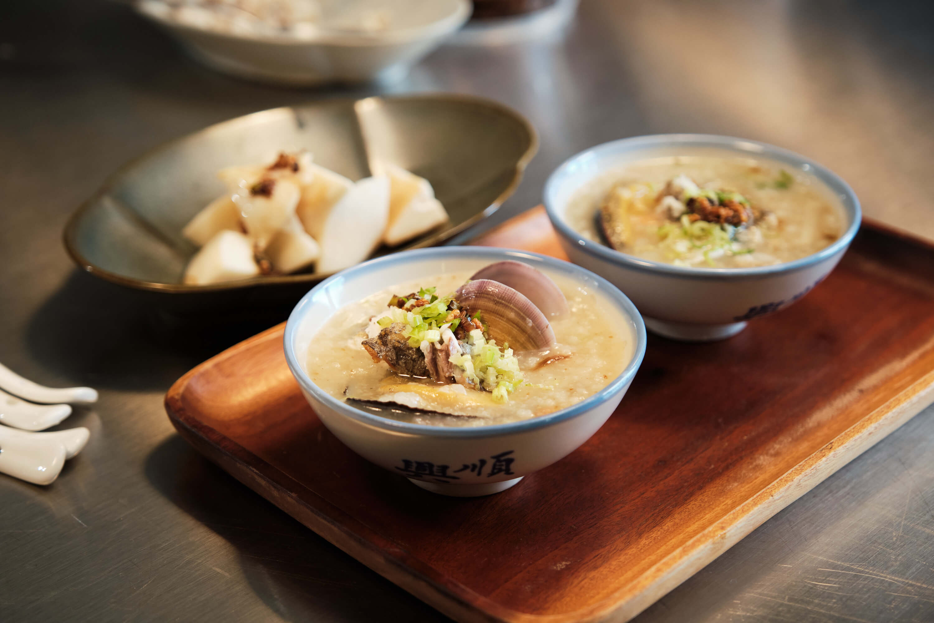江振誠與母親林豐慧的「廣納百川海鮮鹹粥」。