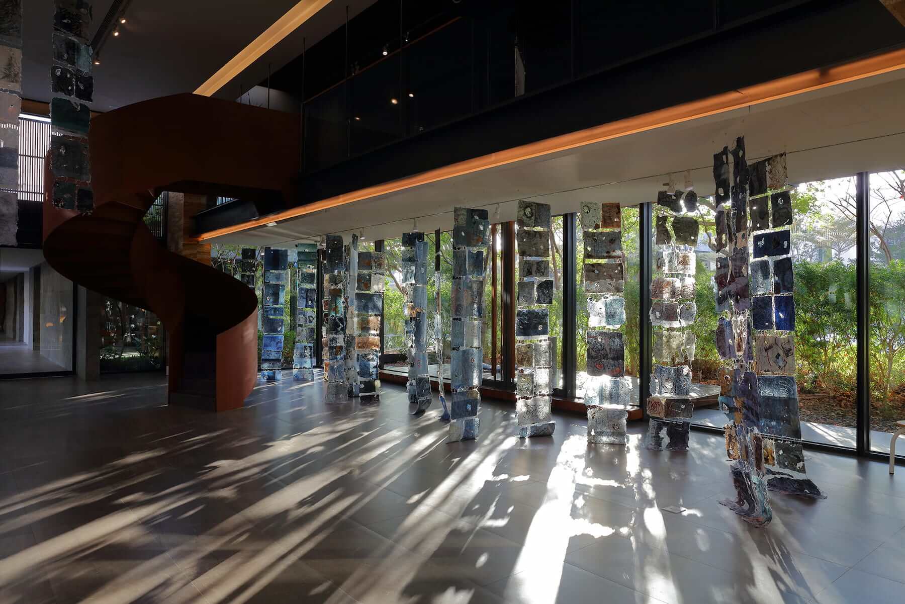 全球人類面臨的迫切課題「氣候變遷」,是近年藝術家積極探索的創作主題。長期致力自然生態與藝術結合的「陸府生活美學教育基金會」,打造年末特展「水曰」,讓參觀者親身游走充滿流動感的空間,聆聽水的低語,思索人類與自然的共生關係——某種因果循環、自然和可持續性之間的矛盾。