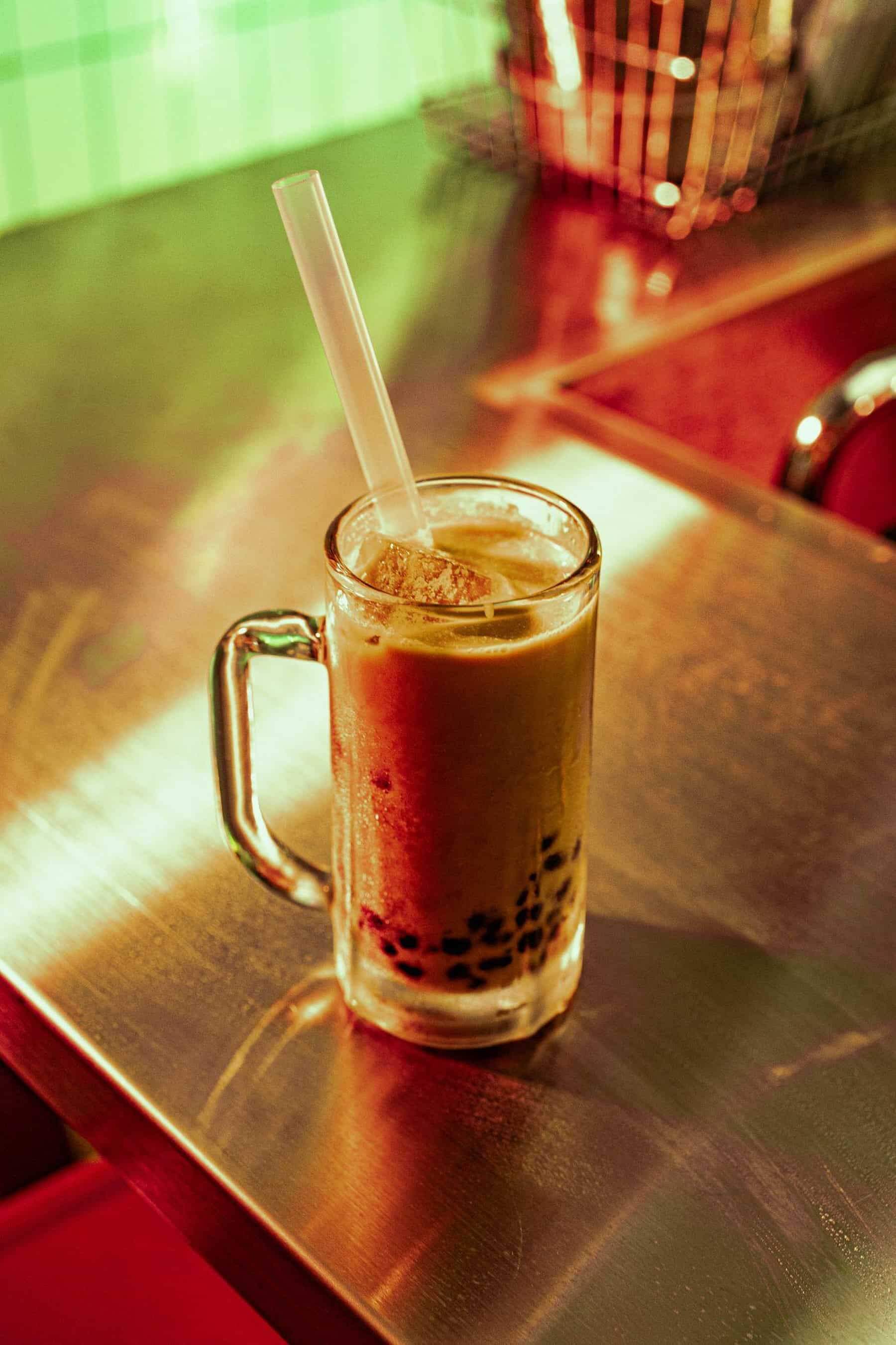 「珍珠奶茶 BOBA」台式經典飲品珍珠奶茶,必定要出現在 CHICKEN BAR;黑糖珍珠與蘭姆酒混入古早味紅茶慢煮的茶酒,不僅台,還讓人回憶滿滿。