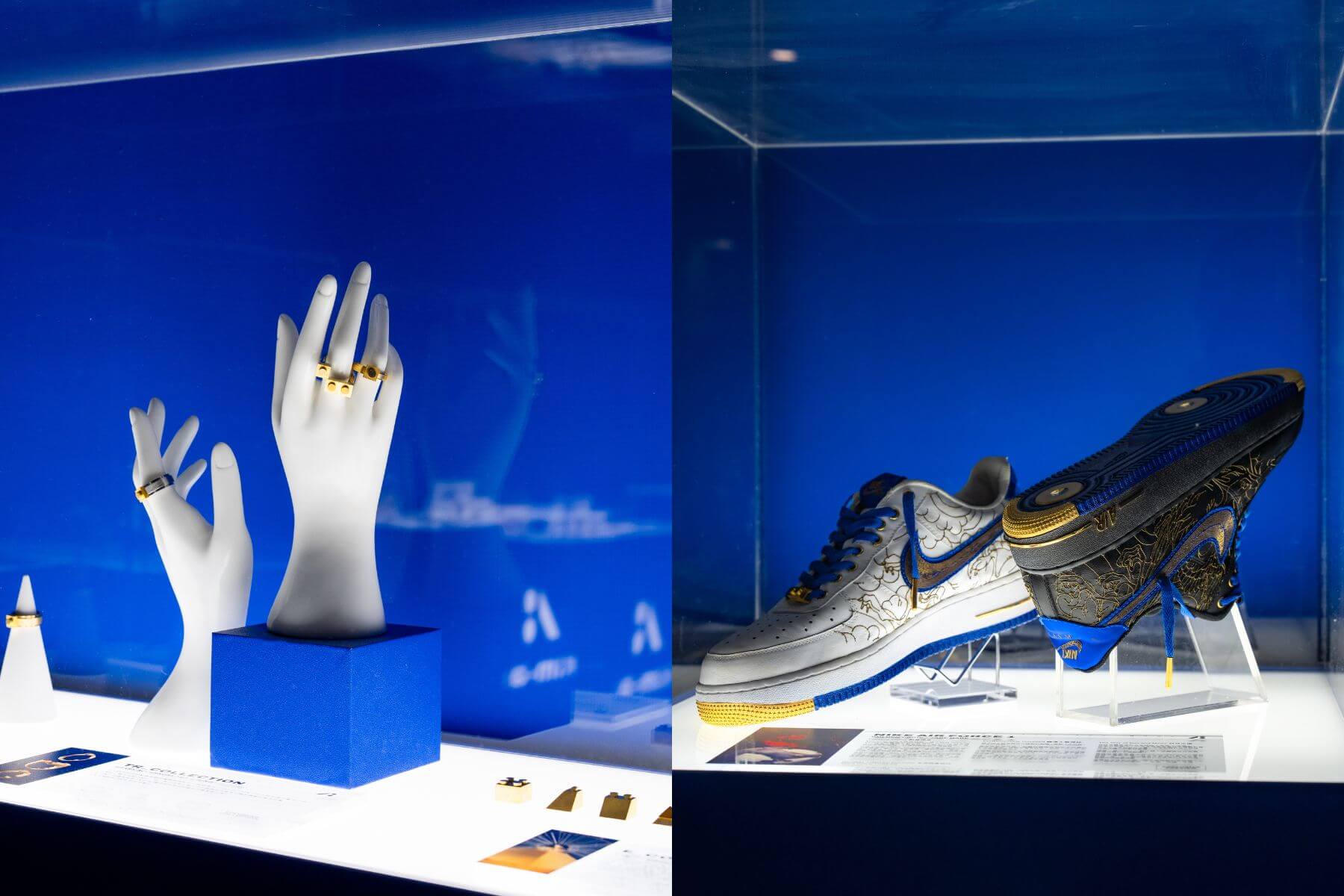 空間二樓則開啟了另一種感官維度,首度導入的 kim-a: 黃金概念店與展區,將藝術收藏的觸角延伸至貴金屬工藝。這裡透過材質的轉譯,探索藝術、工藝與資產價值之間的跨界關係。其中最受矚目的作品,莫過於以超過 1 公斤 999.9 純金打造的 kim-a: × Nike Air Force 1 藝術鞋款。