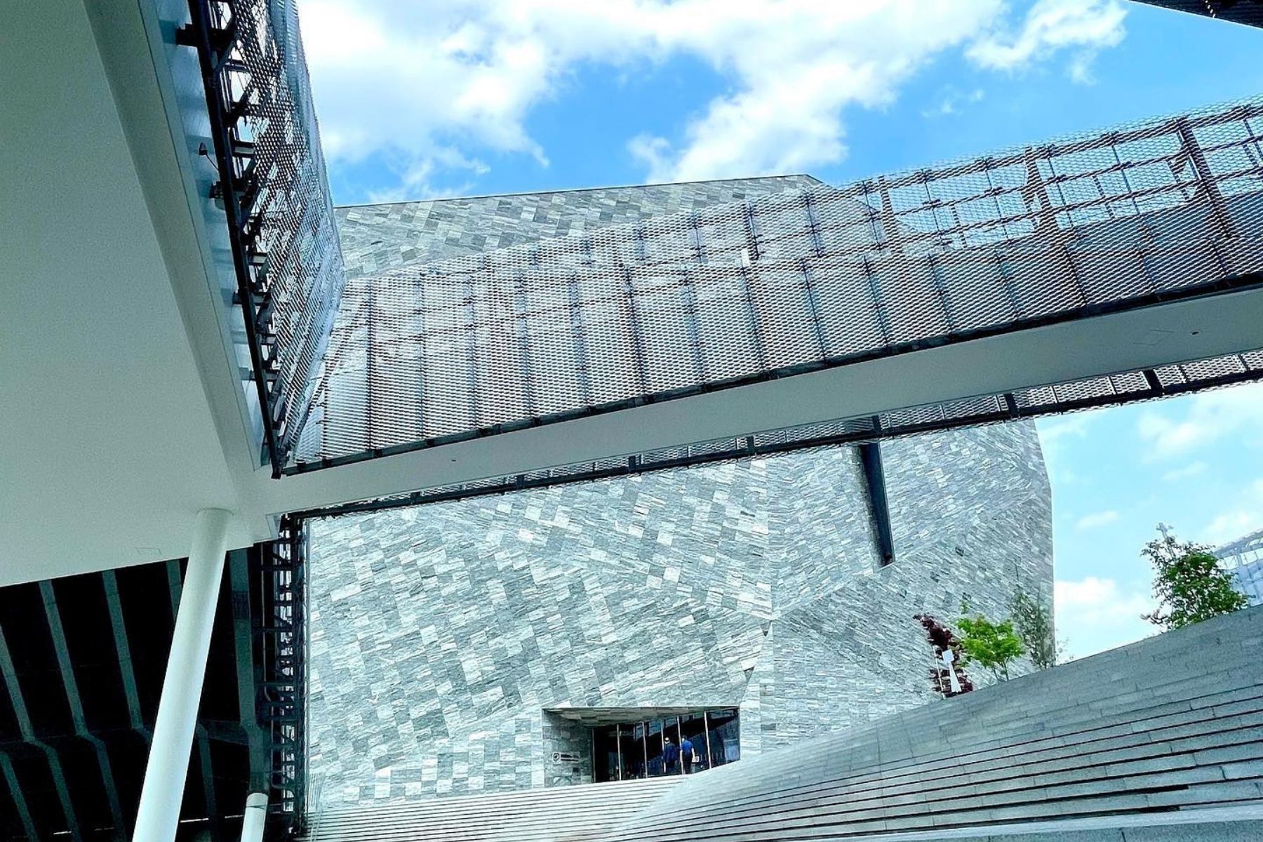 博物館建築由知名建築師隈研吾操刀,由超過2萬片花崗岩所組成的外觀,雄偉外型彷彿將漫畫世界裡的巨石拔地而起,成為帶領民眾穿越即將前往「異世界」的大門。進入館內以十公尺高的「書架劇場」貫穿全區設備,超過3萬冊藏書的圖書館,可變化成音樂、舞台劇等表演場域,讓書中世界真正展現成立體的模樣。