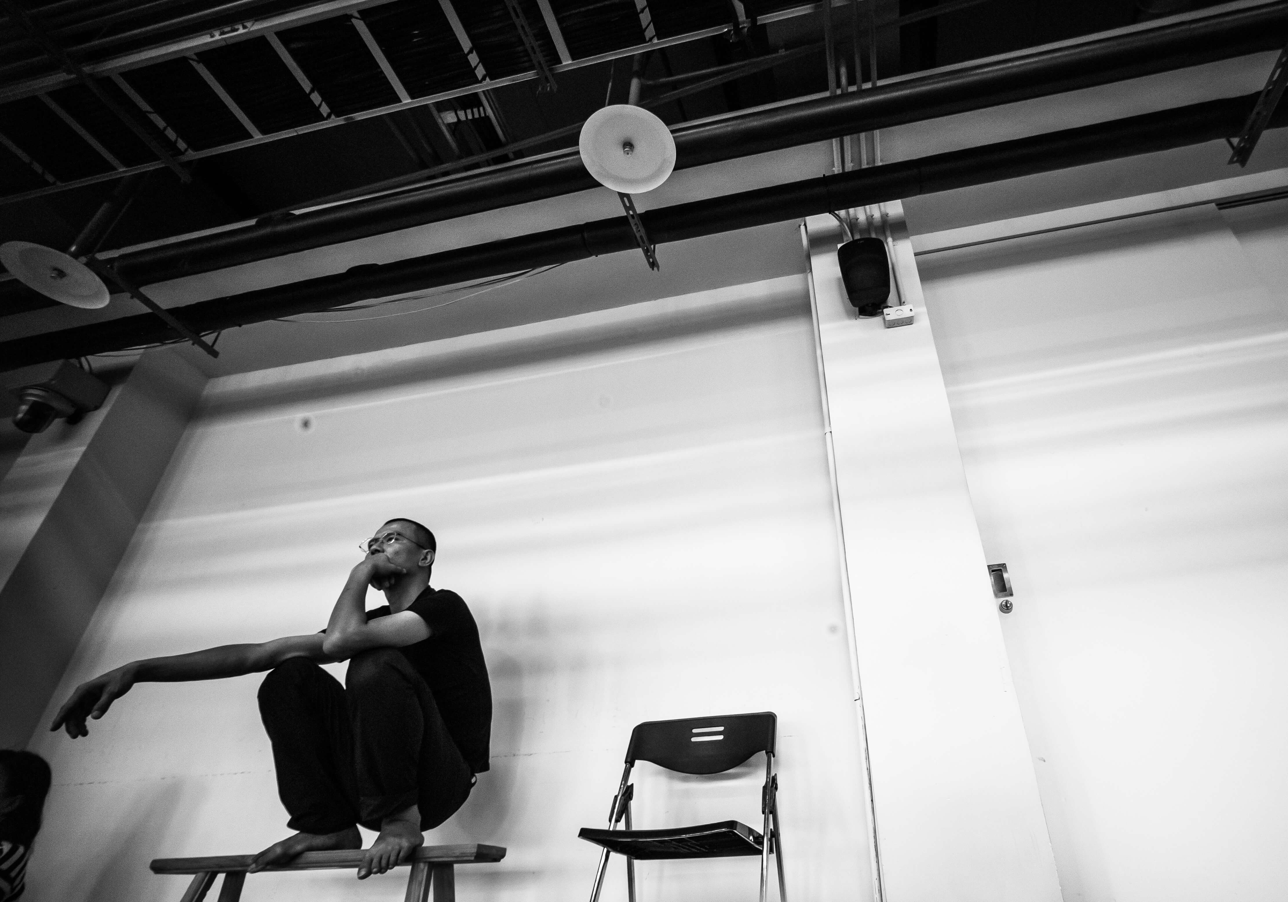 想不到他的專業舞者生涯只有四年,26 歲因傷退出。他不知道自己在怕什麼,家人擔心他經濟不穩定,他還是在腦中、在租借的場地編舞,「蹲下好,還是站著好?男的好,還是女的好?」