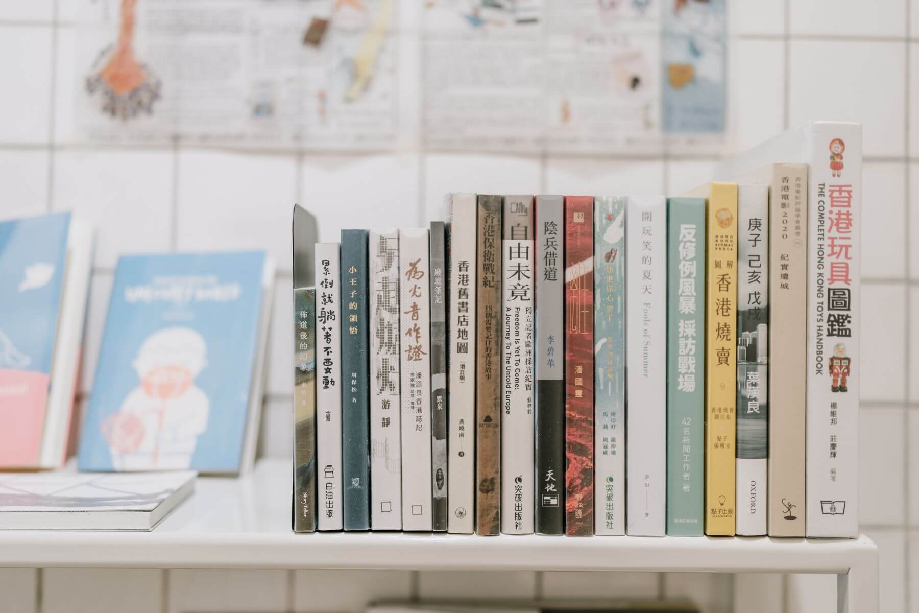 禾炚的選書偏向圖像類,不僅歡迎各屆捐贈關於香港主題或出版社的書籍,阿燊也透過跨海訂購、託香港朋友郵寄等方式,蒐羅各種難以在台灣市面上看見的香港圖文書籍與小誌。阿燊打趣地笑說:「字很多的書我也看不下去,所以這裡的書大多是我自己也喜歡看的。」