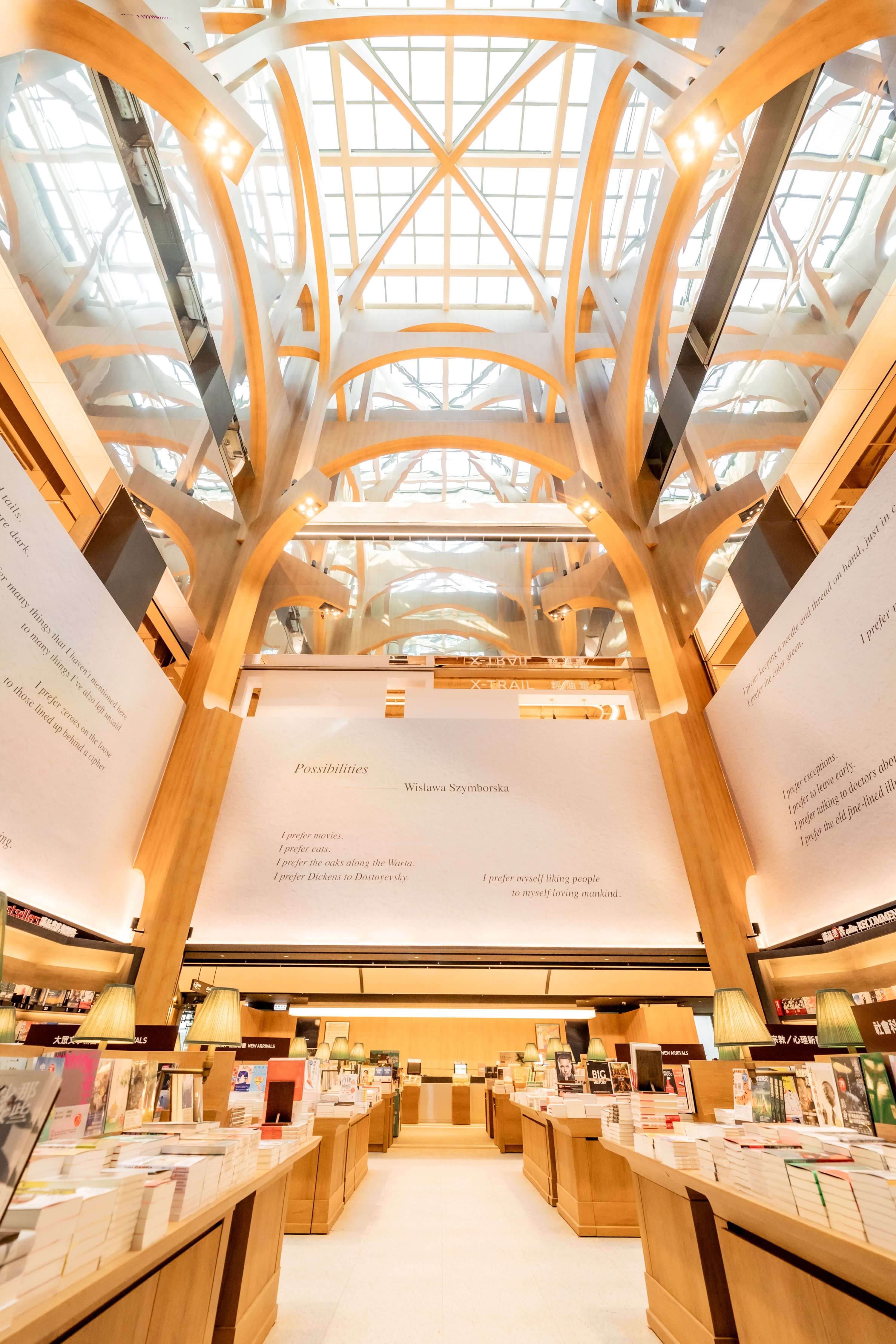 從一樓的大廳,你可乘坐手扶梯直達四樓,此處在自然的光輝下提供了一個寧靜的閱讀角落。踏入四樓的書店,首先映入眼簾的是高達30米的挑高天井,名為「光合廣場」的區域充斥著柔和日光,成為了沐浴書香的理想場所。此外,還有一條長達50米的「閱讀大道」等待愛書人前來探索和學習。