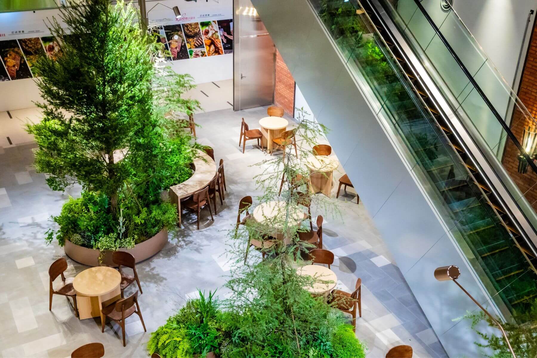 穿越長達百米的寬闊樓面,「誠品生活新店」緊鄰7,000坪綠湖生態公園,創造綠意閱讀的全新嘗試,誠品生活攜手曾獲全球IFLA設計獎、美國PPA多年生植物設計首獎等多項國際大獎的景觀設計師吳書原,一起將植物園搬進店內。