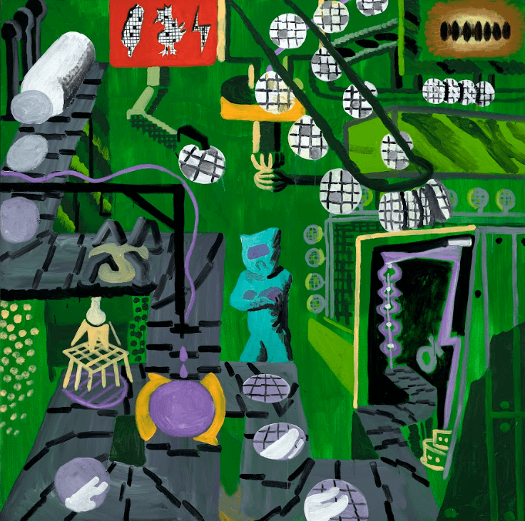 如果說四大子題是楊立對歷史的對照,那麼展覽中對「當代生產線」的描繪,則是對現世的側寫。楊立細緻地描繪晶圓生產與工業製造的過程,在他看來,這種日夜不停運作的工業系統,或許是人類消失後,唯一能證明我們這代文明曾經存在過的證據。這讓《盛世之後》不僅止於談論歷史的消亡,也誠實地記錄了我們此刻高度依賴的現實世界。