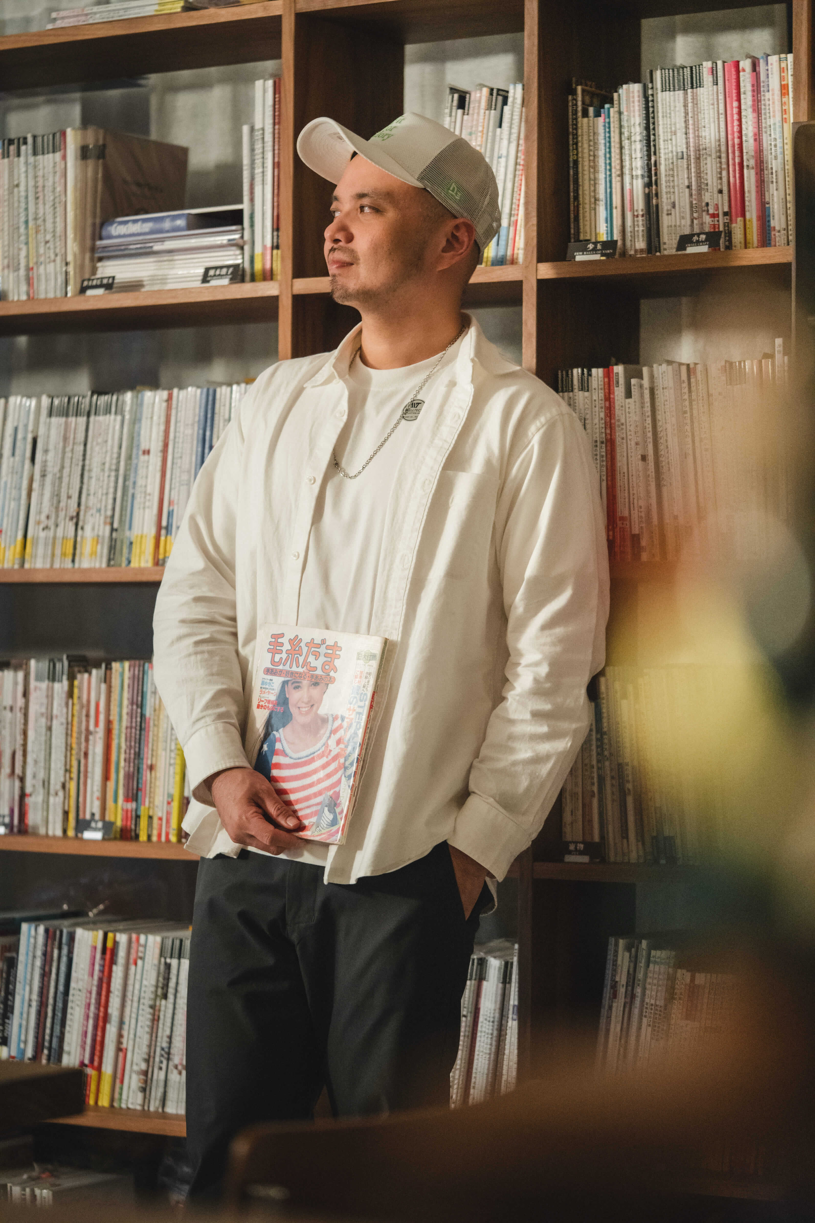 走進毛線森林的工作室,感官會先被一種靜謐的秩序接管。這裡的空氣彷彿比室外慢了幾個拍子,層架上整齊排列的毛線球,在燈光下散發著植物纖維特有的柔和色澤。這是一個充滿「線條」的空間,從地板延伸到天頂,無數的纖維交織成一種溫潤的保護色,而這些線條的交會點,是毛線森林的創辦人Leo林志剛。