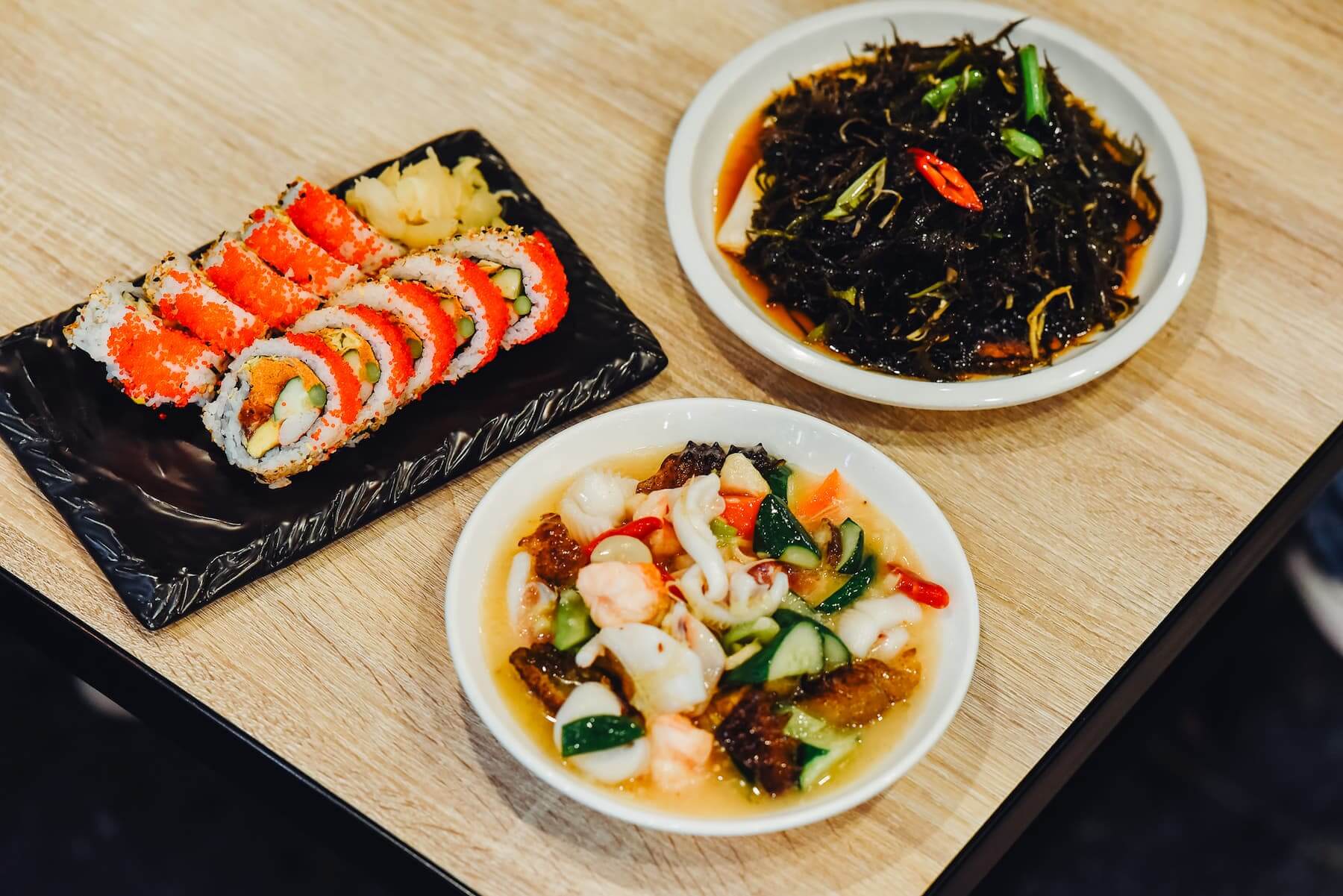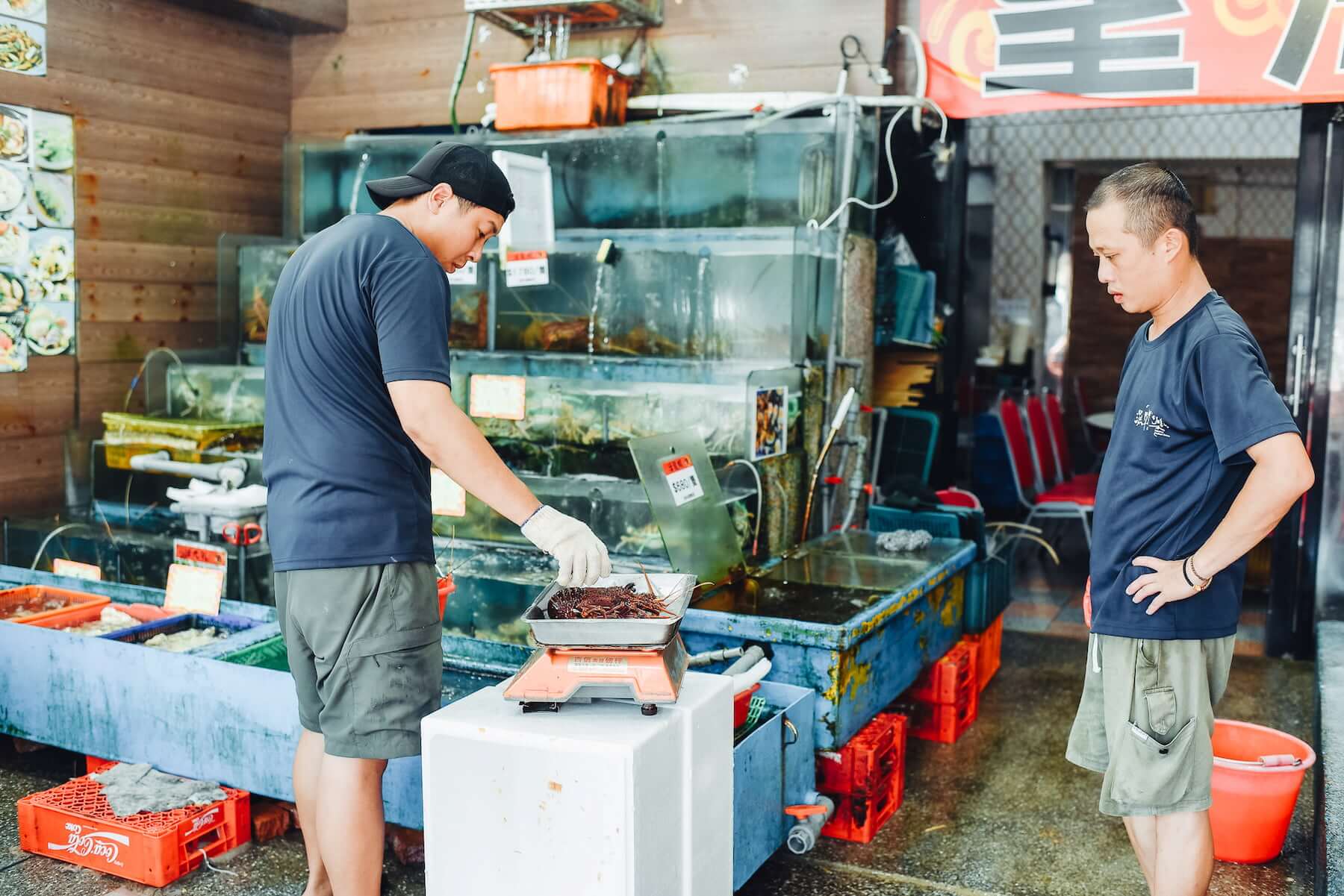 由漁村內的堂兄弟檔經營,結合台式與日式料理之精華,有各式壽司、冷盤與熱炒料理,撒上獨門蒜酥翻炒的「避風塘炒蟹」是招牌必點。