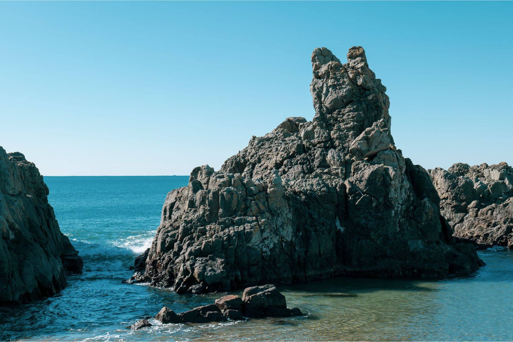 銚子地質公園內神似小狗豎耳的「犬岩」。