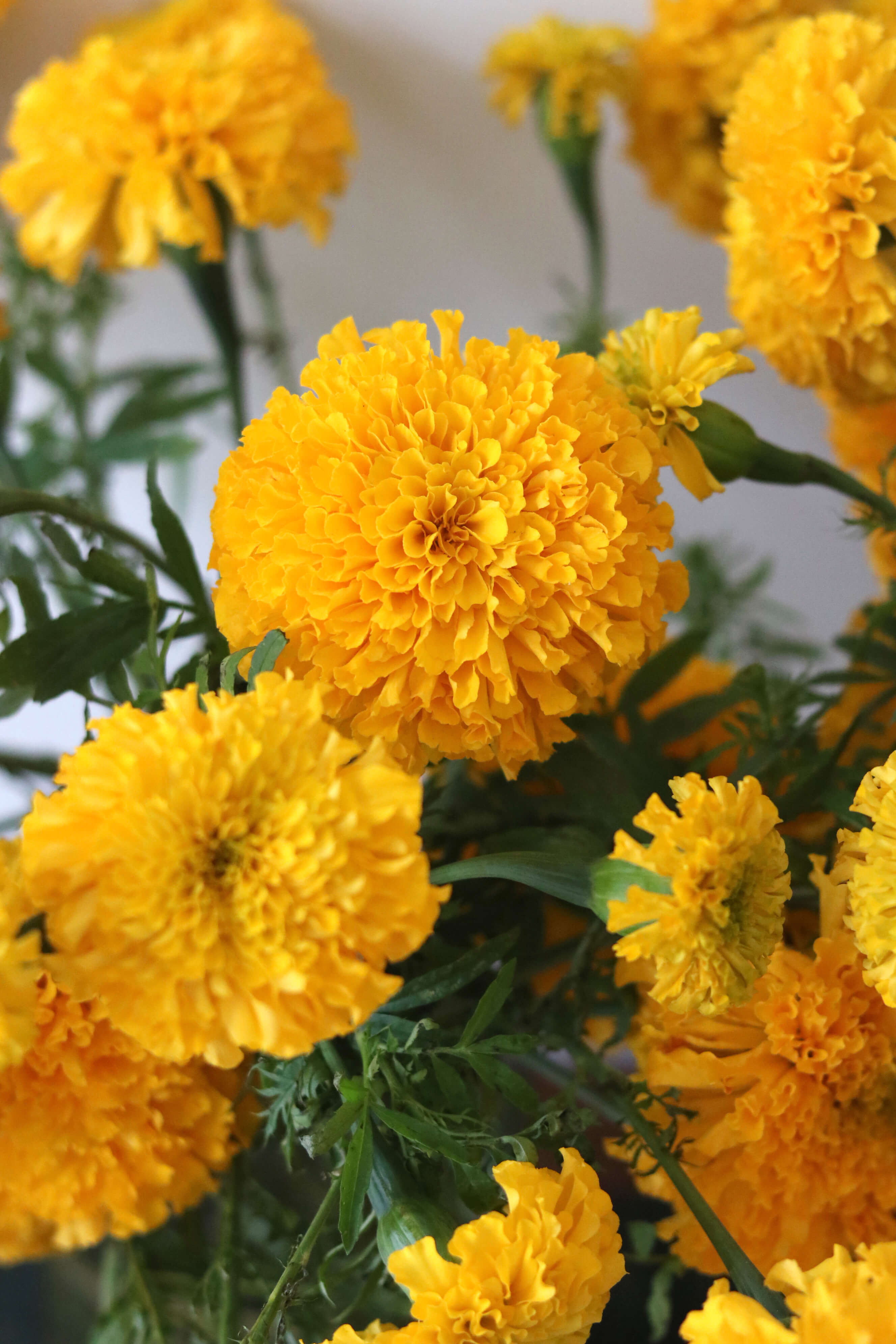台灣花農這陣子成功培育出萬壽菊切花,讓萬壽菊離開盆栽,開始走進花束的領域。有些地方會將萬壽菊的花頭洗淨,裹粉油炸來食用。另外,萬壽菊帶有奇特的氣味,這個氣味有些人會覺得很香,有些人會覺得奇臭無比,大概就是鮮花裡的香菜,我覺得蠻香的,下次遇到萬壽菊時,大家不妨聞聞看自己是屬於哪一派吧。
