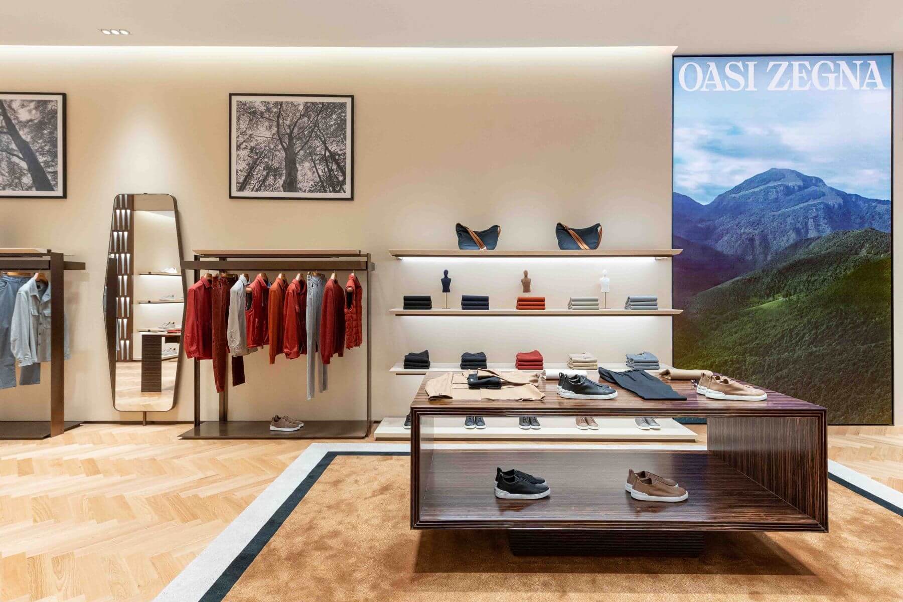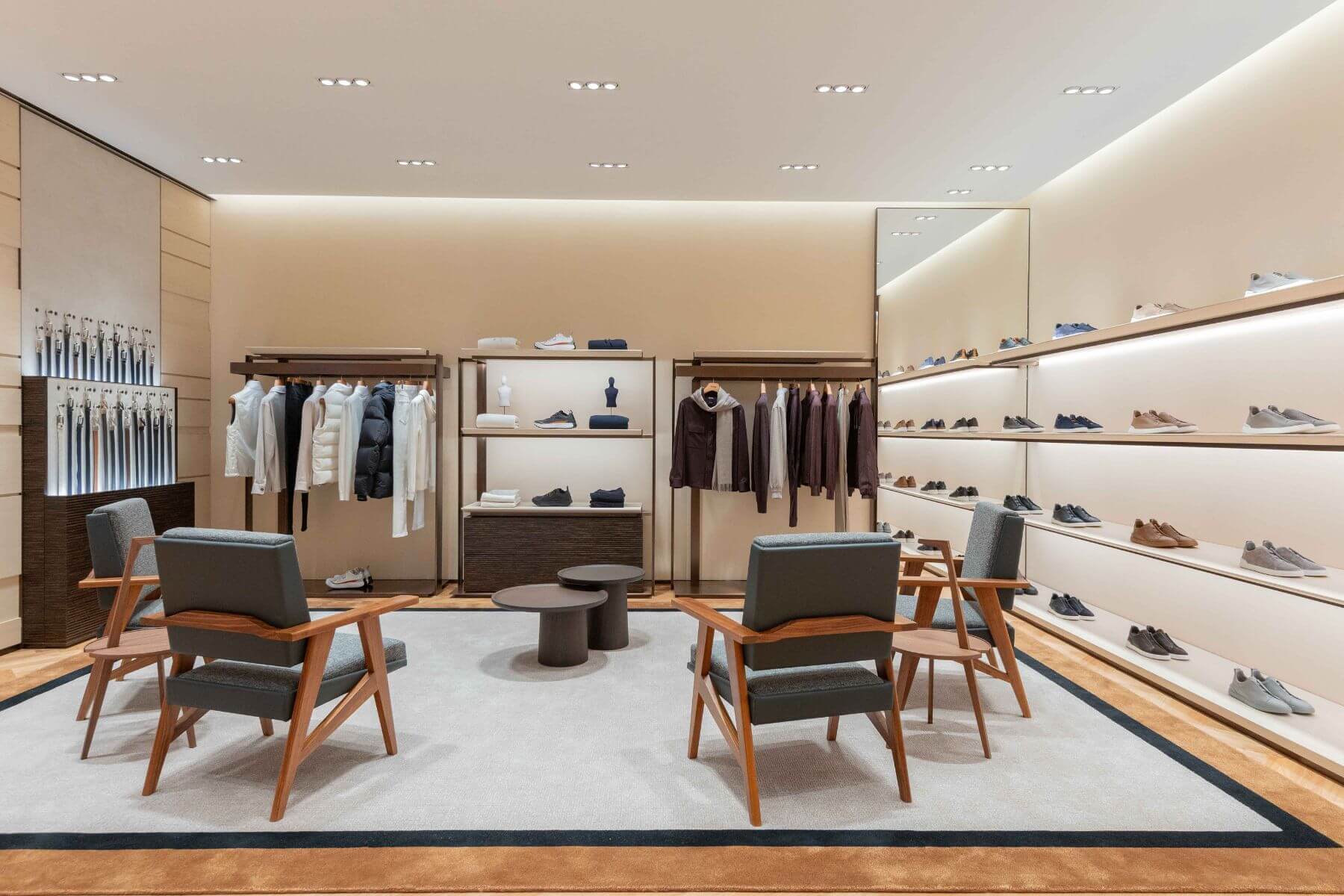 嶄新旗艦店完整傳遞ZEGNA奢華休閒服飾精神,店內展示最新男裝,包含多功能的ALBA Overshirt和Triple Stitch奢華休閒鞋等主打商品,反映現代男士所需風格與態度。