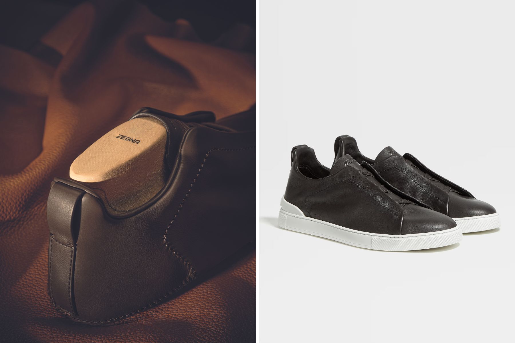 (圖右)深棕色Triple Stitch SECONDSKIN奢華休閒鞋_價格店洽 by ZEGNA。